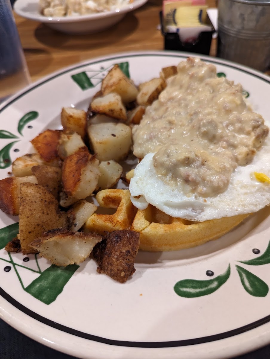 Great food, excellent service. Had a great time at this gem while visiting the greater Concord area. Churros pancakes for the win. Biscuits and gravy, omelet, be&c on sourdough. Locals seem to love it, too.