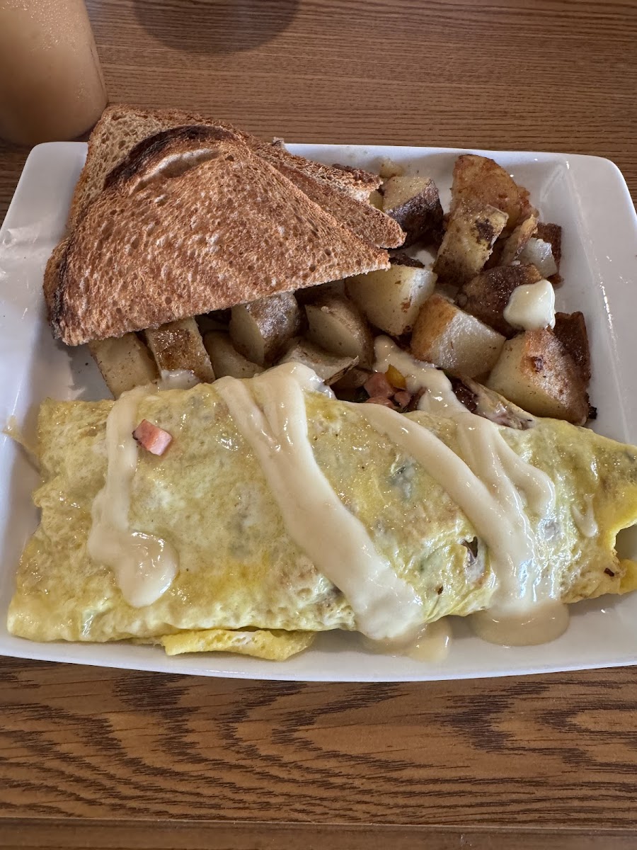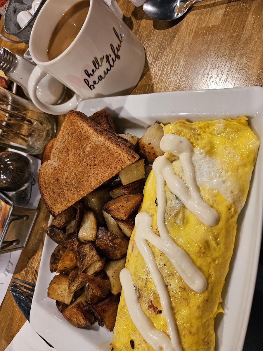 Wow just wow. You walking and the aroma of the food just awakens your senses. We ordered the Brusket Bomb omelet and the Scotty Too Hottie omelet. The array of flavors wrapped onto the omelet is amazing!!! They are opened Wednesday-Sunday. If you are not local it's definitely worth the trip!!!!